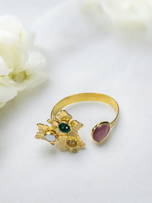 Camelia Trio Flower Natural Stone Adjustable Bracelet