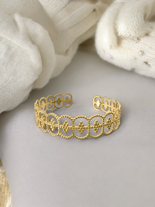 Yasmin Leaf Pattened Stainless Steel Adjustable Bracelet