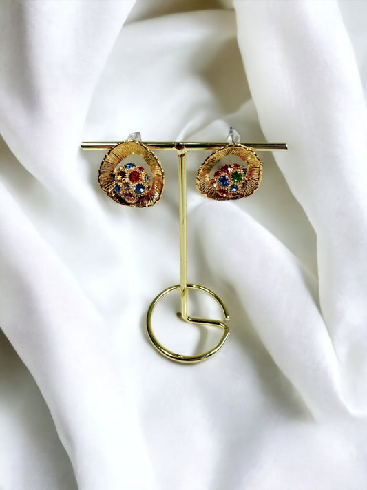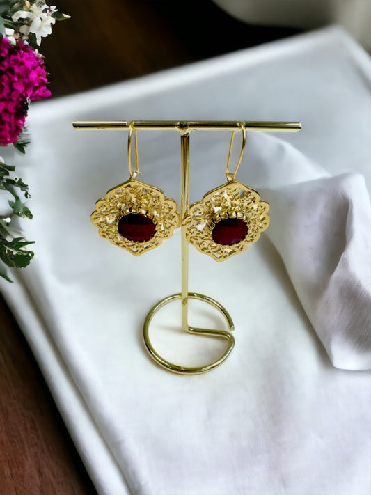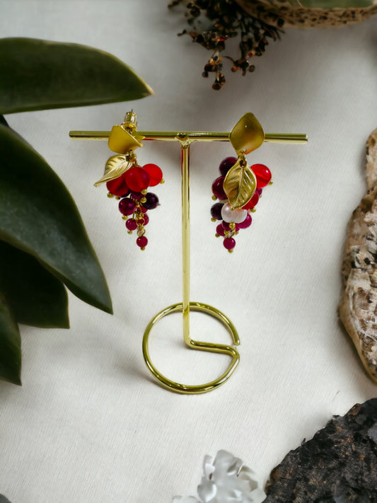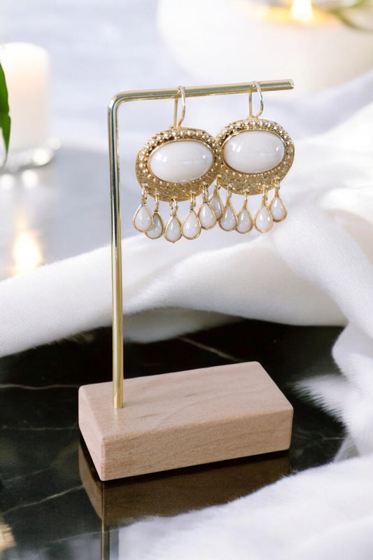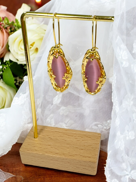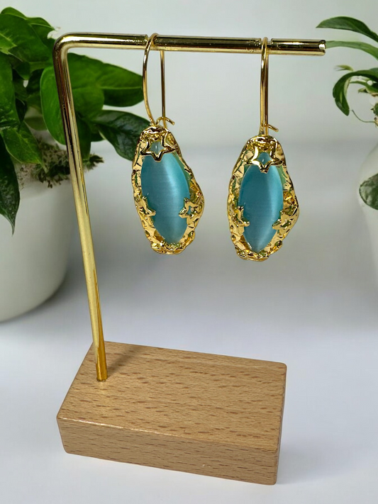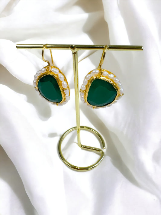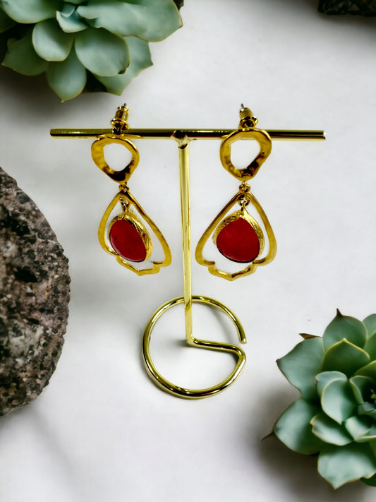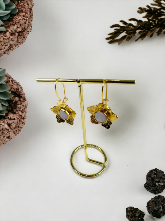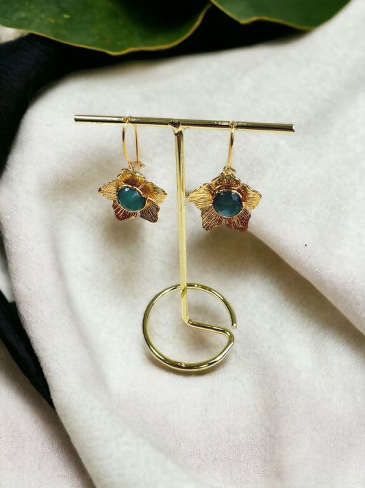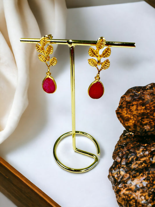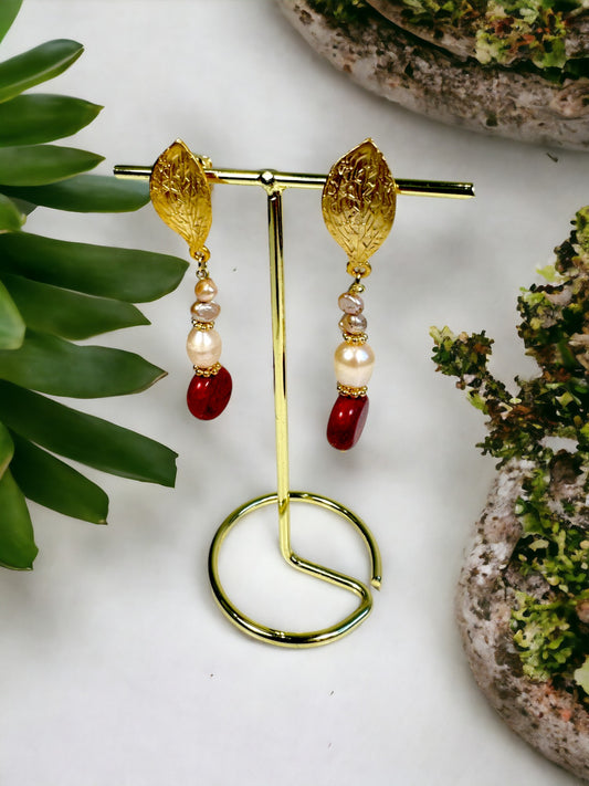 Olivia Leaf Pattened Metal and Natural Stone Earrings