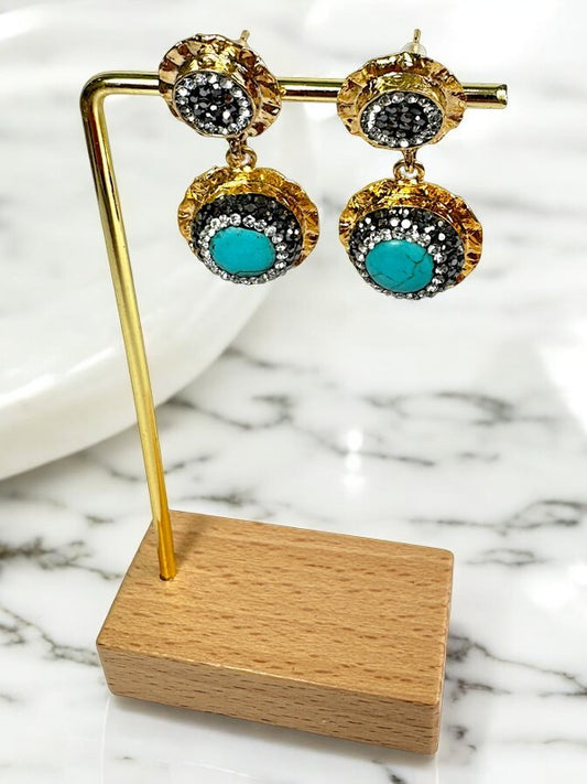 Mira Vintage Inspired Earrings - 3 Peaces Set Turquoise